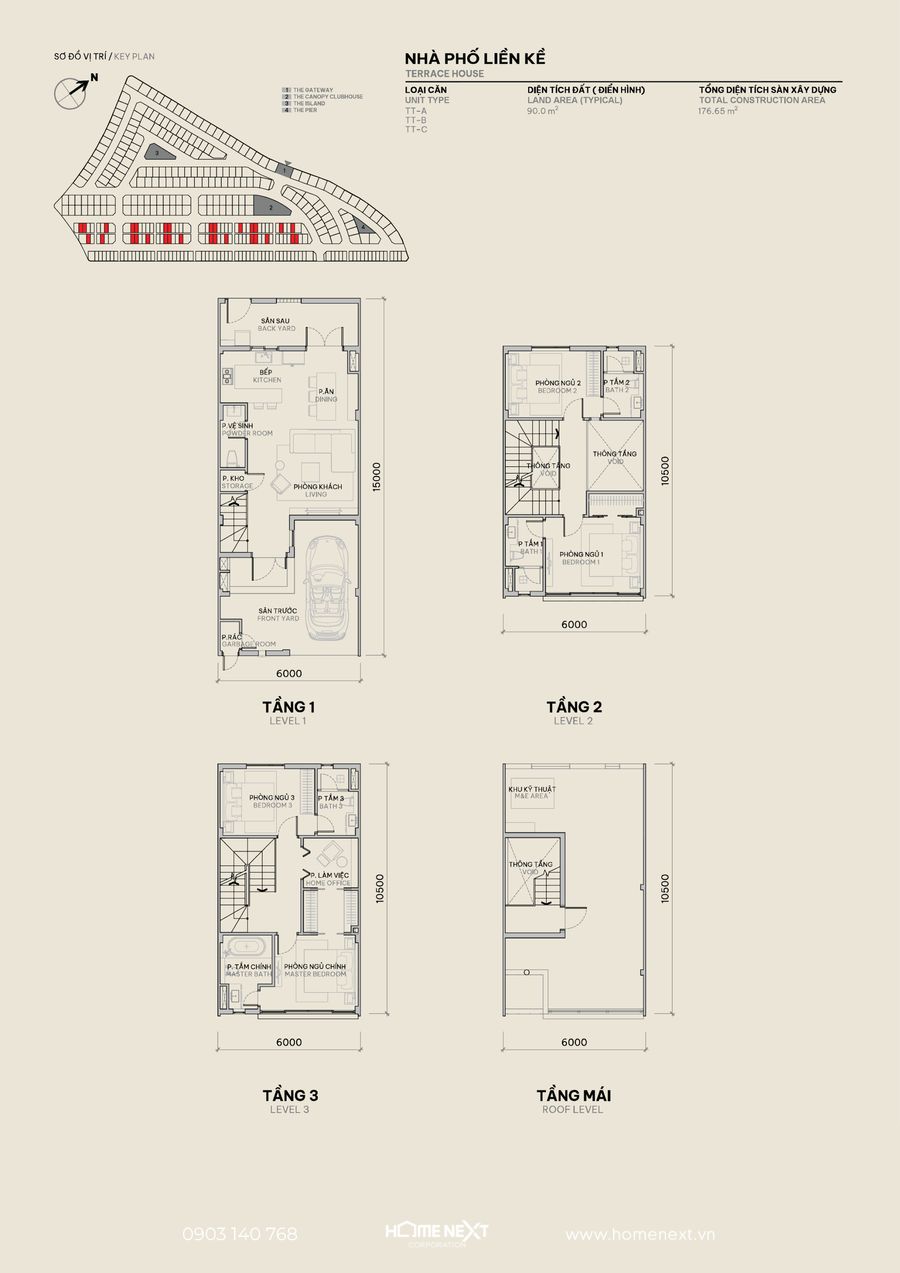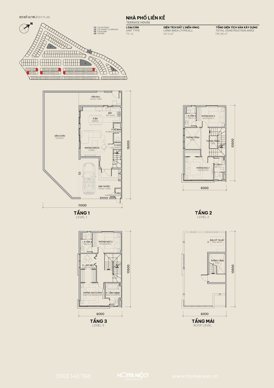 | Diện tích khu thấp tầng | 6mx16m ~ 96m2 đến 500m2 |