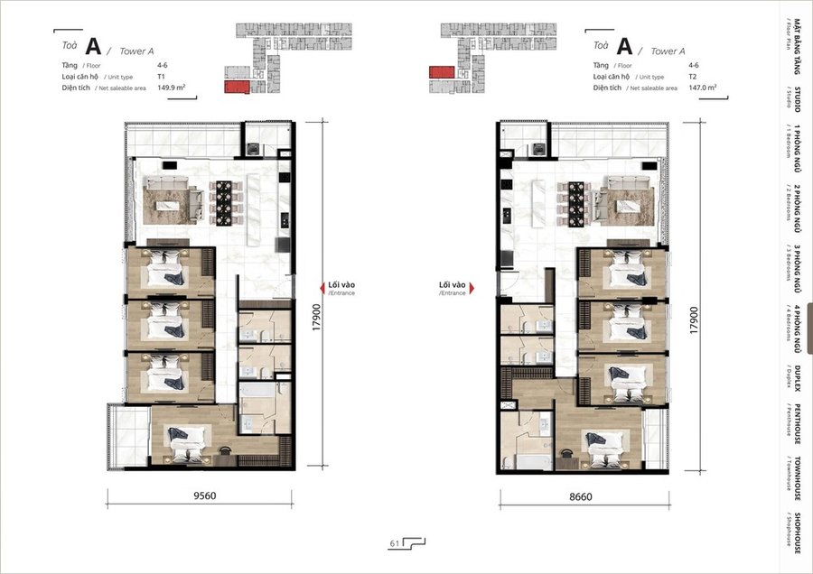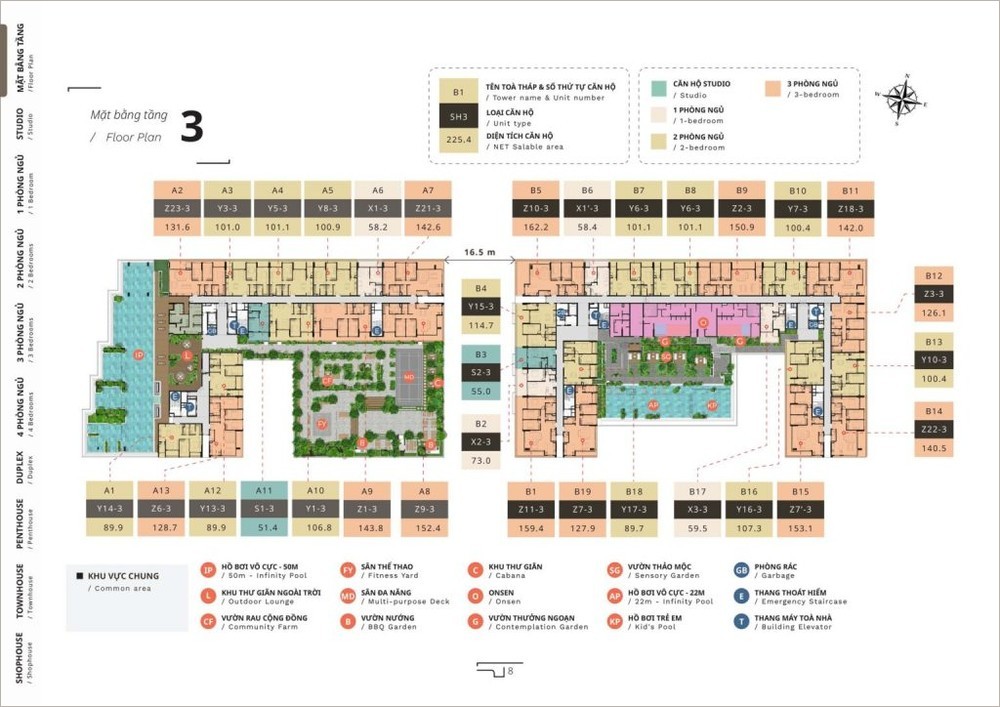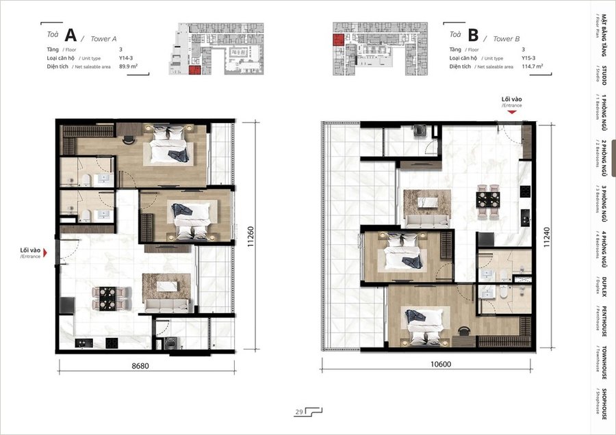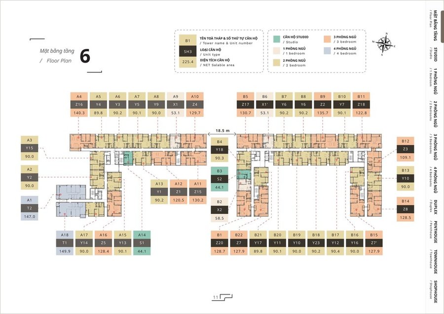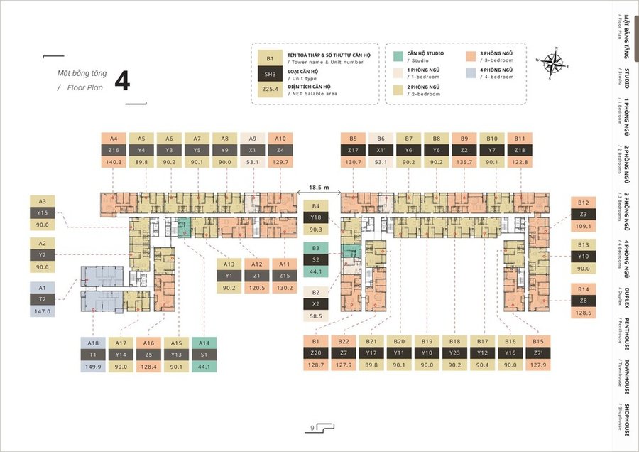 Dự án bao gồm nhiều loại hình căn hộ để phục vụ nhiều nhu cầu khác nhau: từ studio, căn hộ 1 phòng ngủ, đến căn hộ 2, 3, 4 phòng ngủ phù hợp gia đình nhỏ và nhiều thành viên.