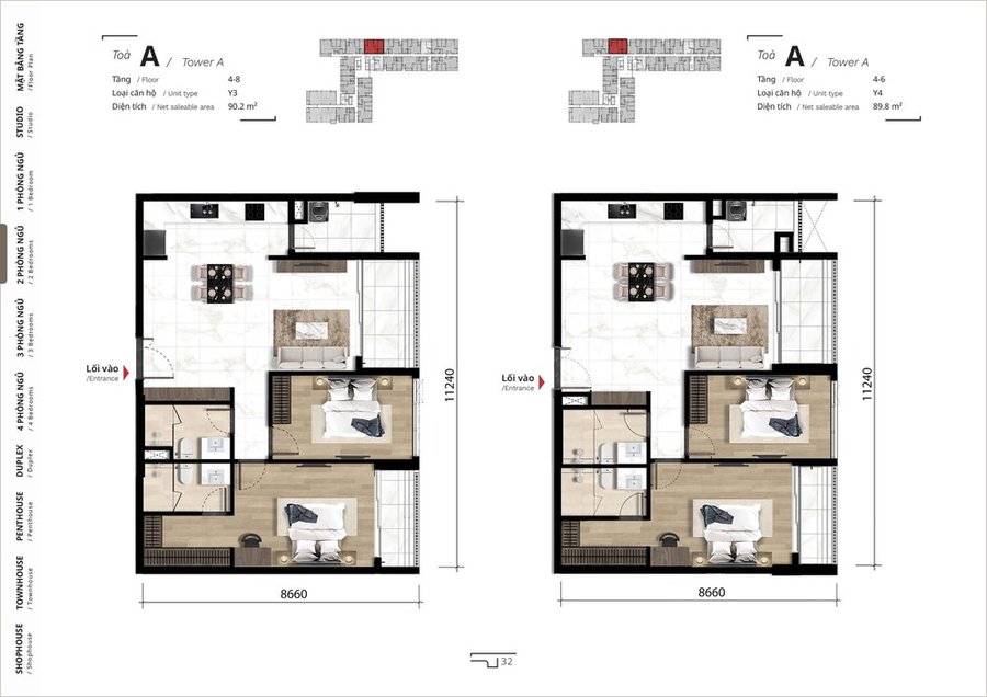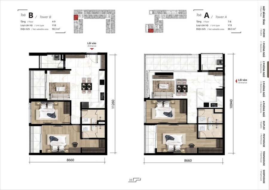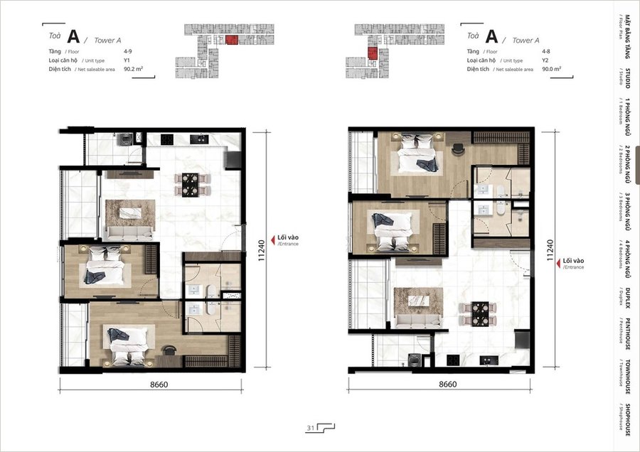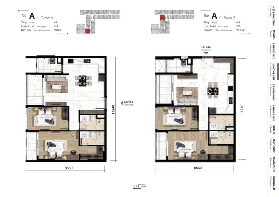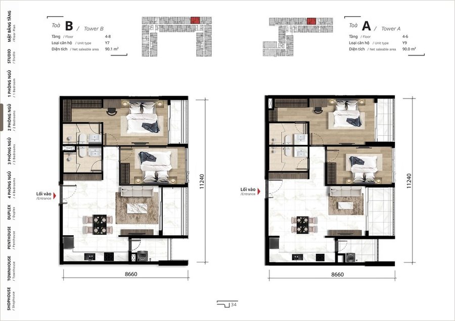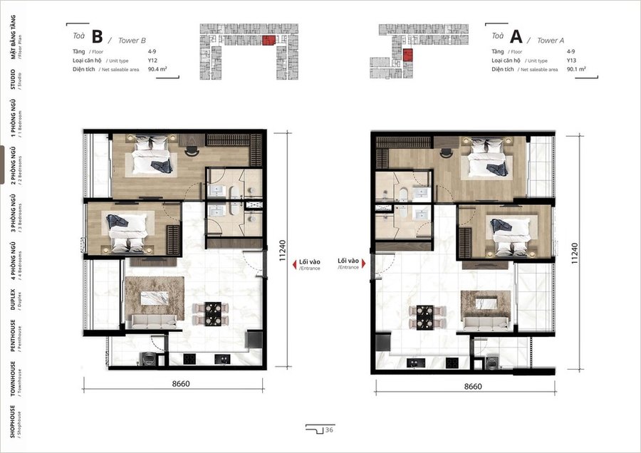 Dự án bao gồm nhiều loại hình căn hộ để phục vụ nhiều nhu cầu khác nhau: từ studio, căn hộ 1 phòng ngủ, đến căn hộ 2, 3, 4 phòng ngủ phù hợp gia đình nhỏ và nhiều thành viên.