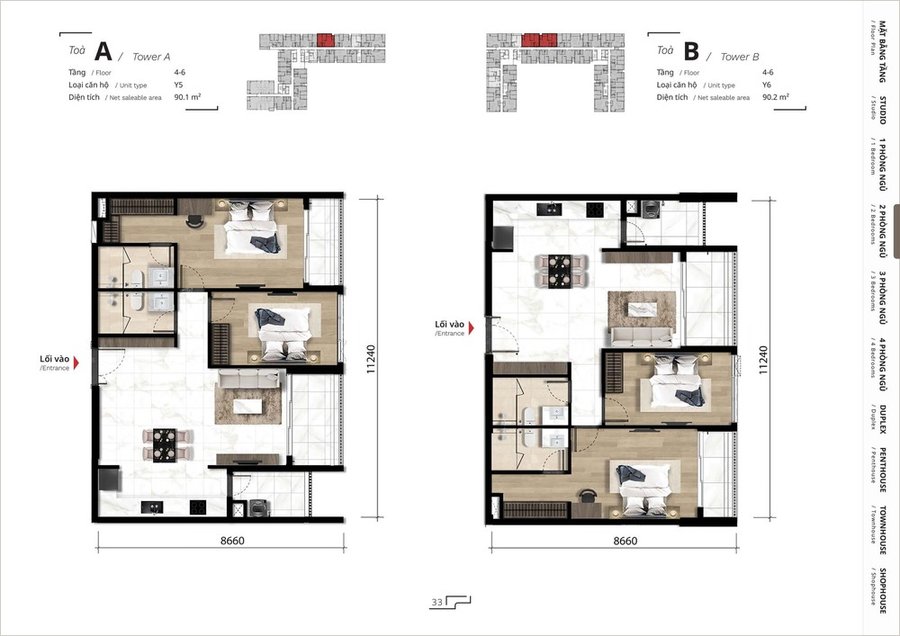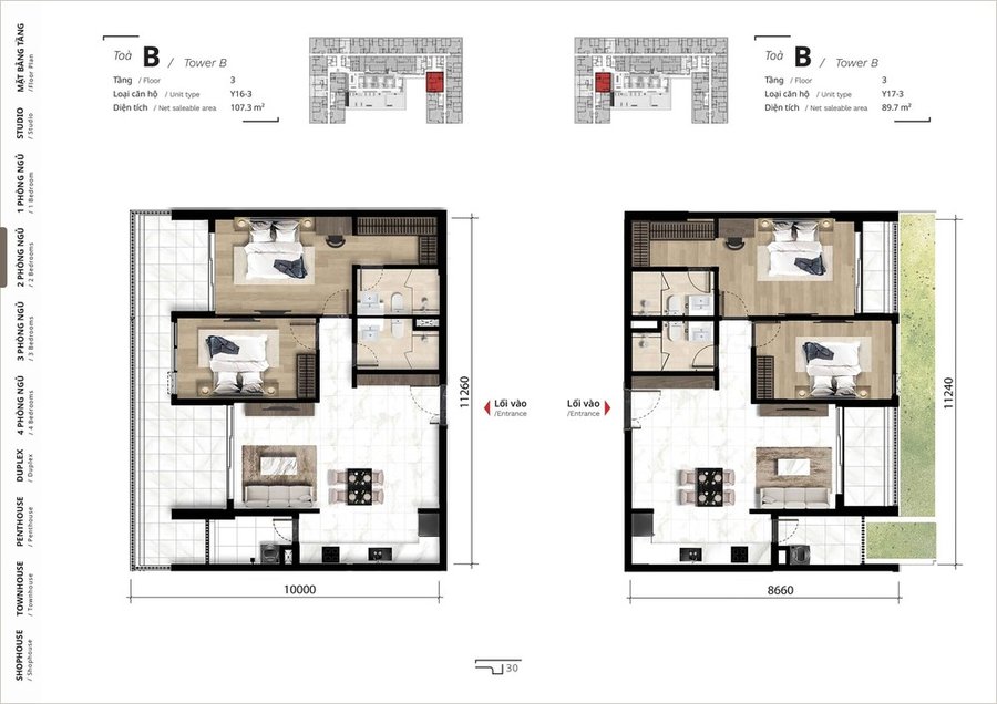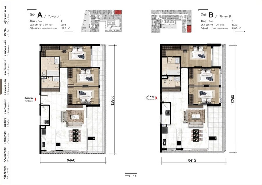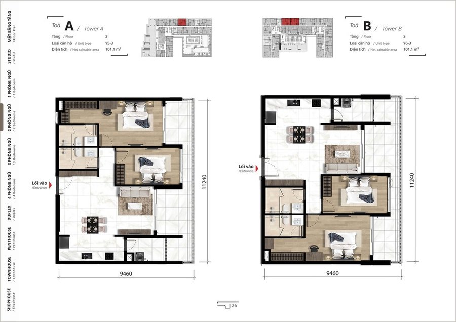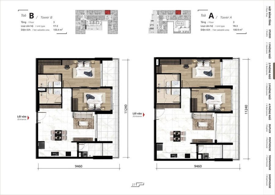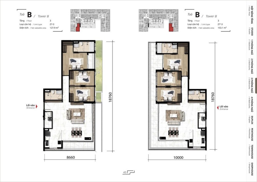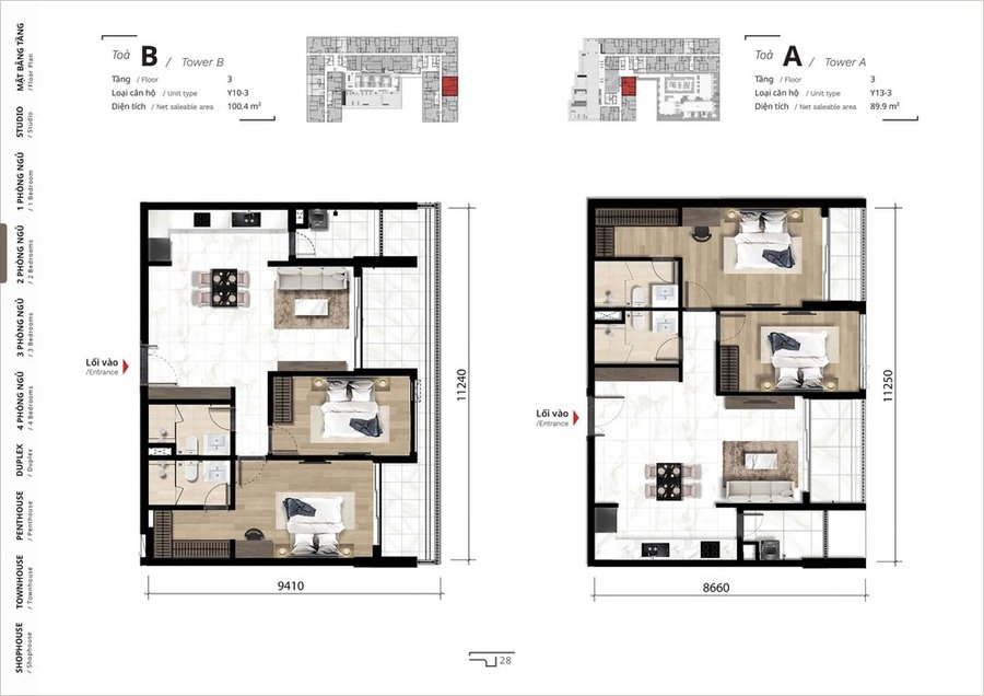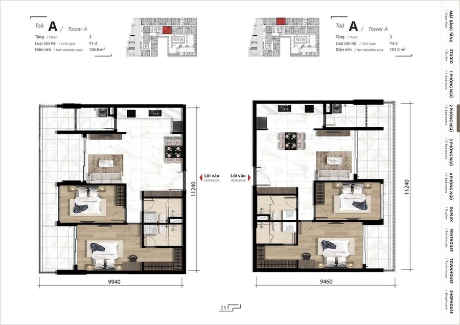 Mặt bằng căn hộ 3 phòng ngủ