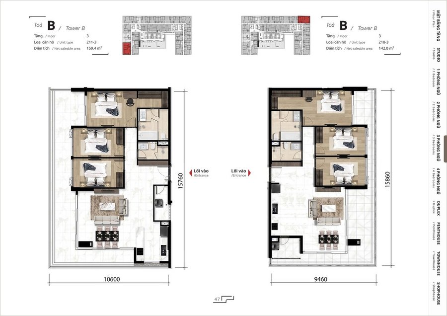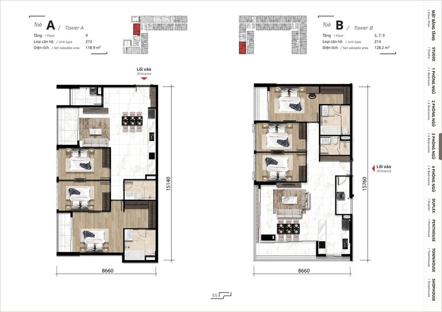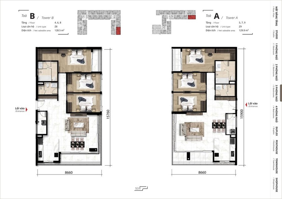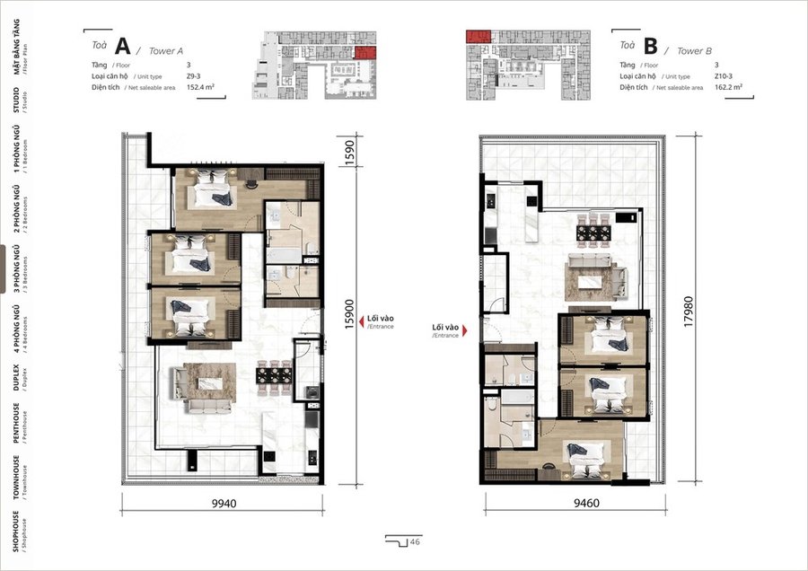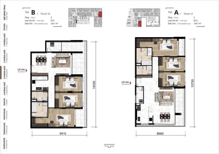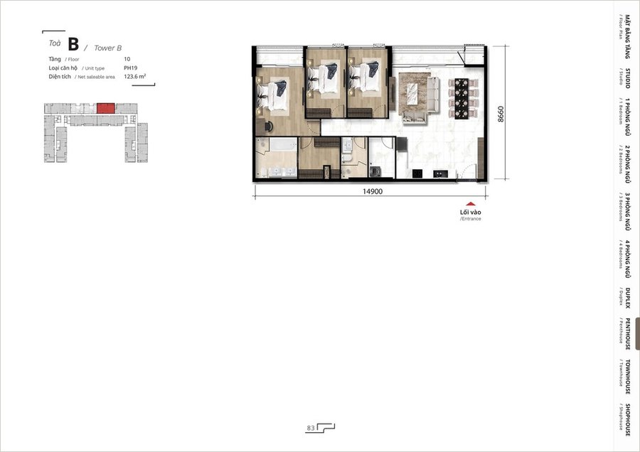 Mặt bằng căn hộ penthouse