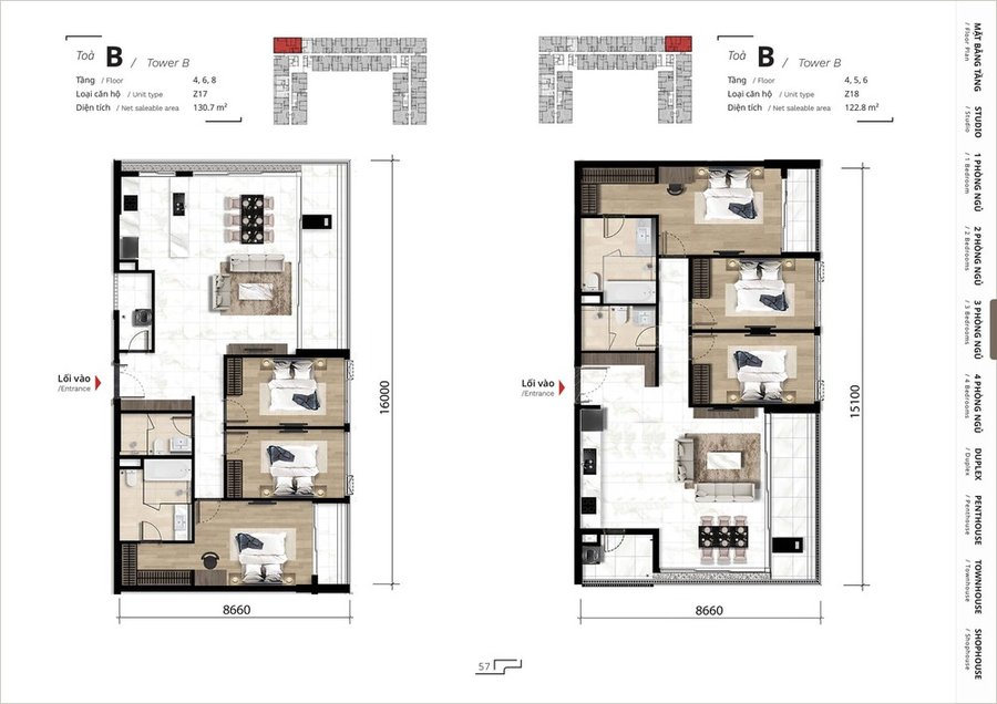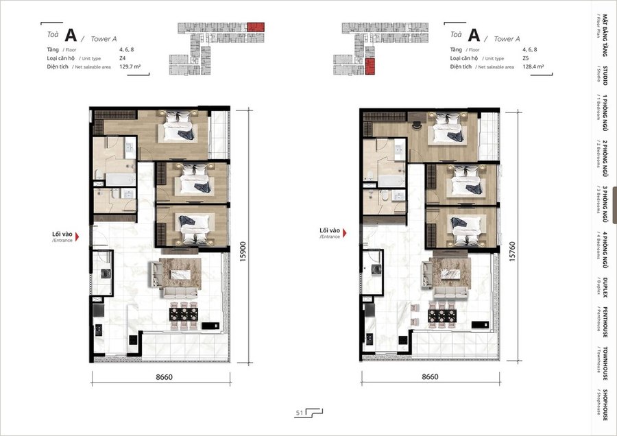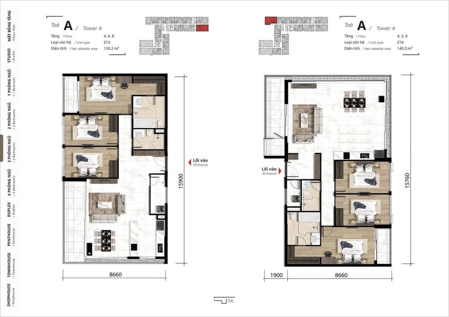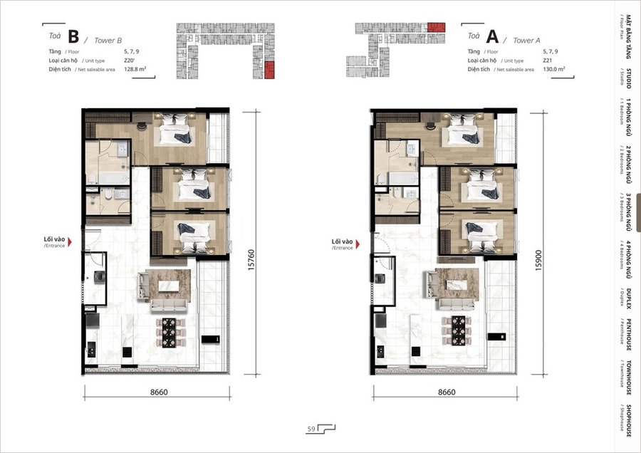 Mặt bằng căn hộ 4 phòng ngủ