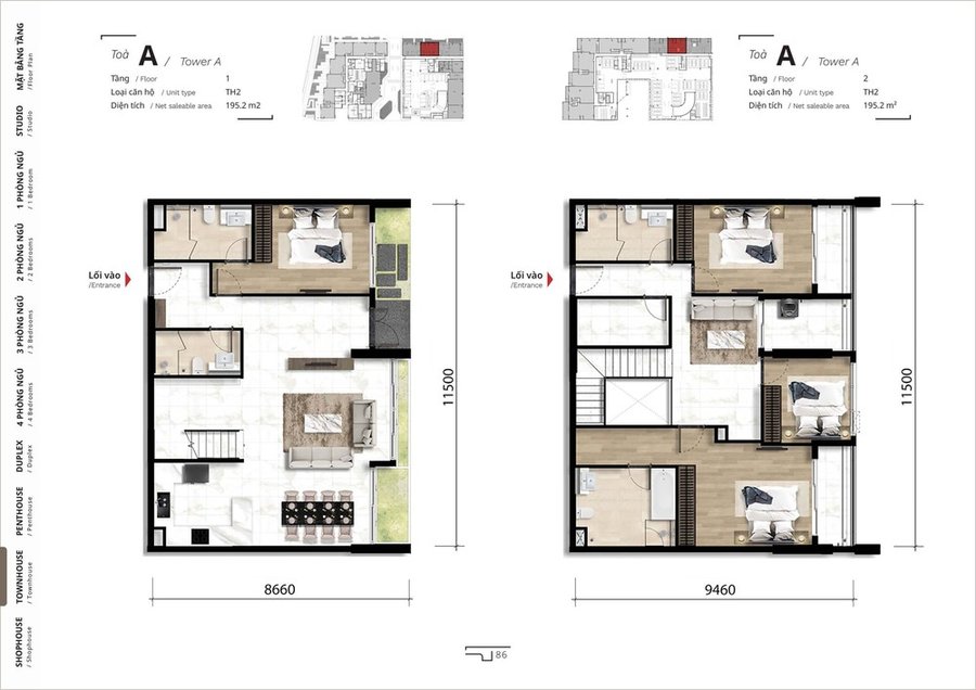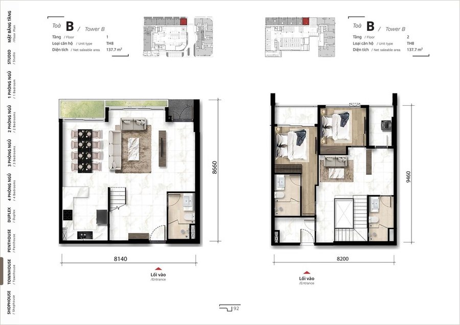 Mặt bằng căn hộ duplex